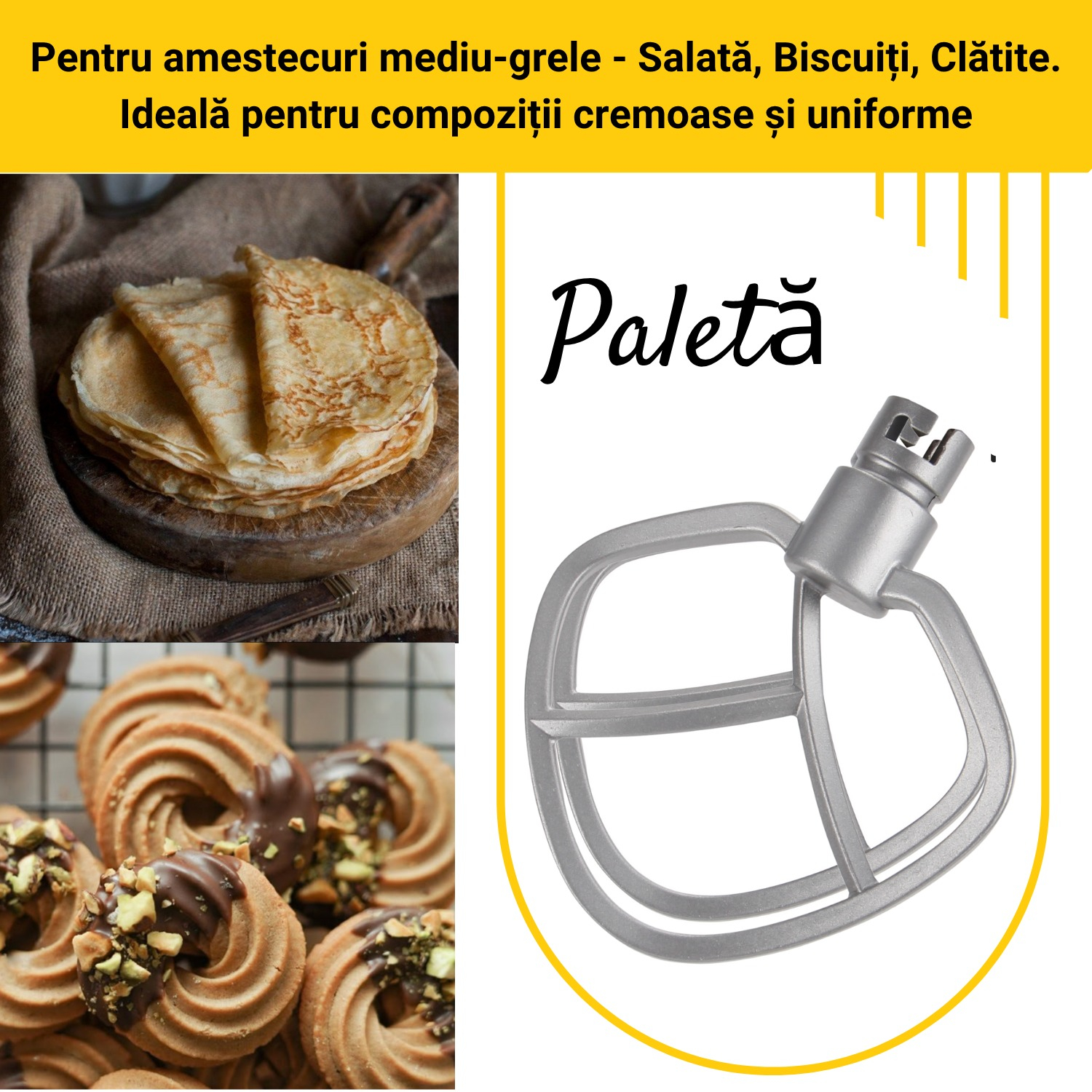 2. Paletă cu strat teflonat, ideală pentru amestecuri uniforme;