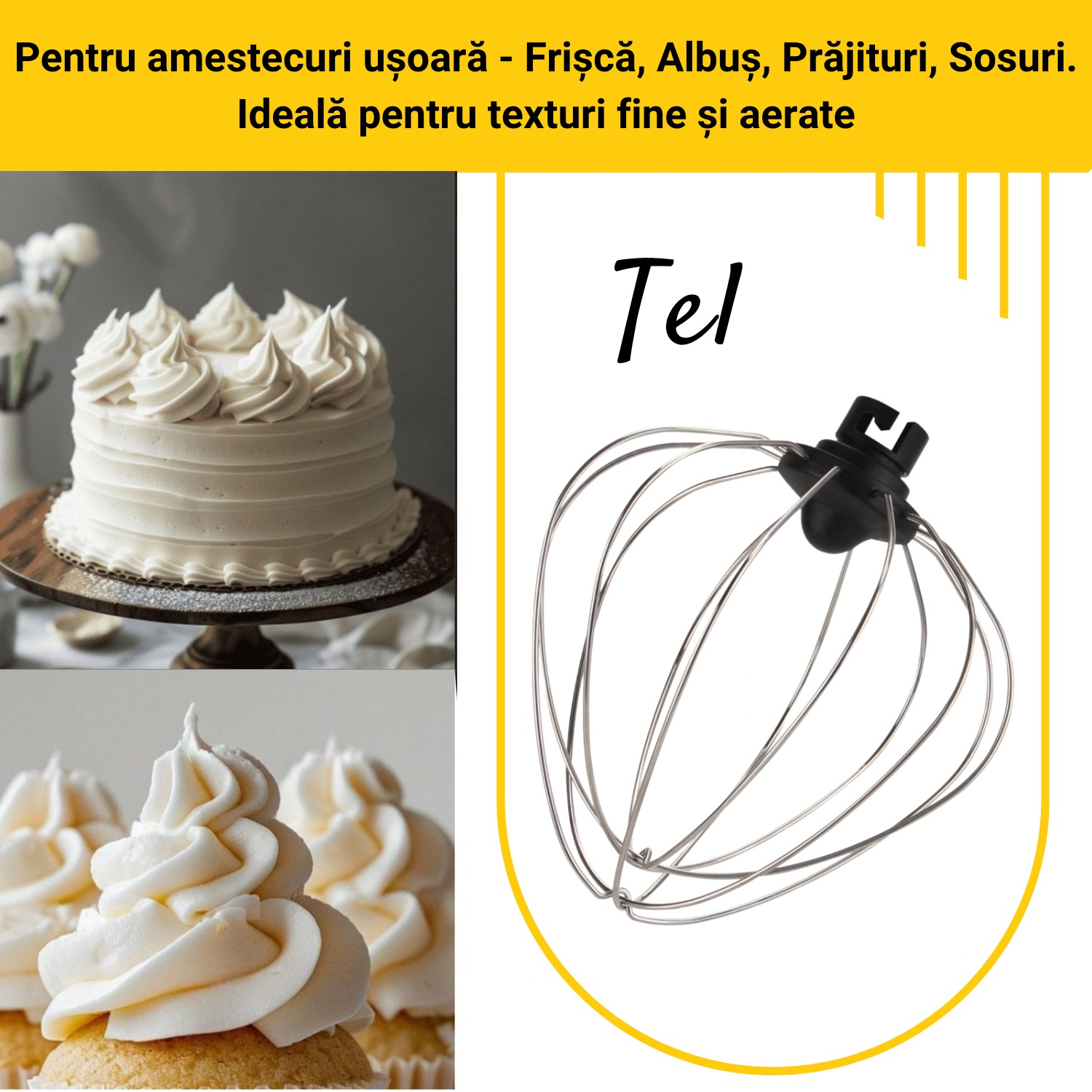 3. Tel din inox, pentru spume, frișcă și compoziții aerate;