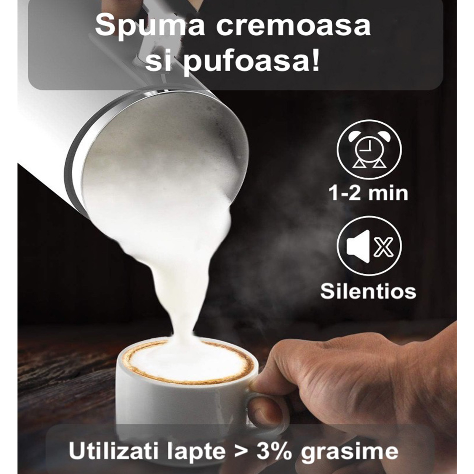 (Vă recomandăm să folosiți lapte cu un procentaj de grăsime de cel mult 3% pentrurezultate optime).