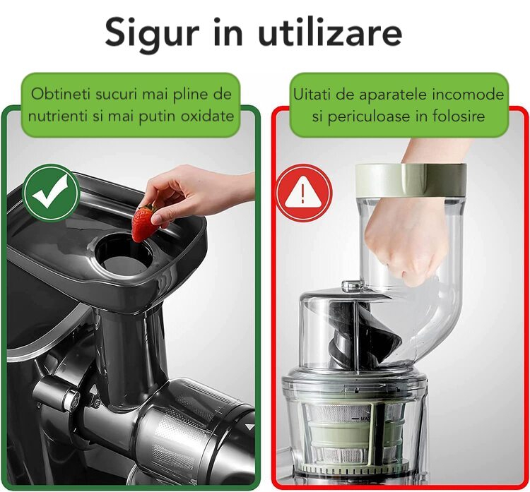 Sita superioară permite extragerea cu până la 30% mai mult suc și 40% mai multe vitamine, comparativ cu storcătoarele centrifugale.